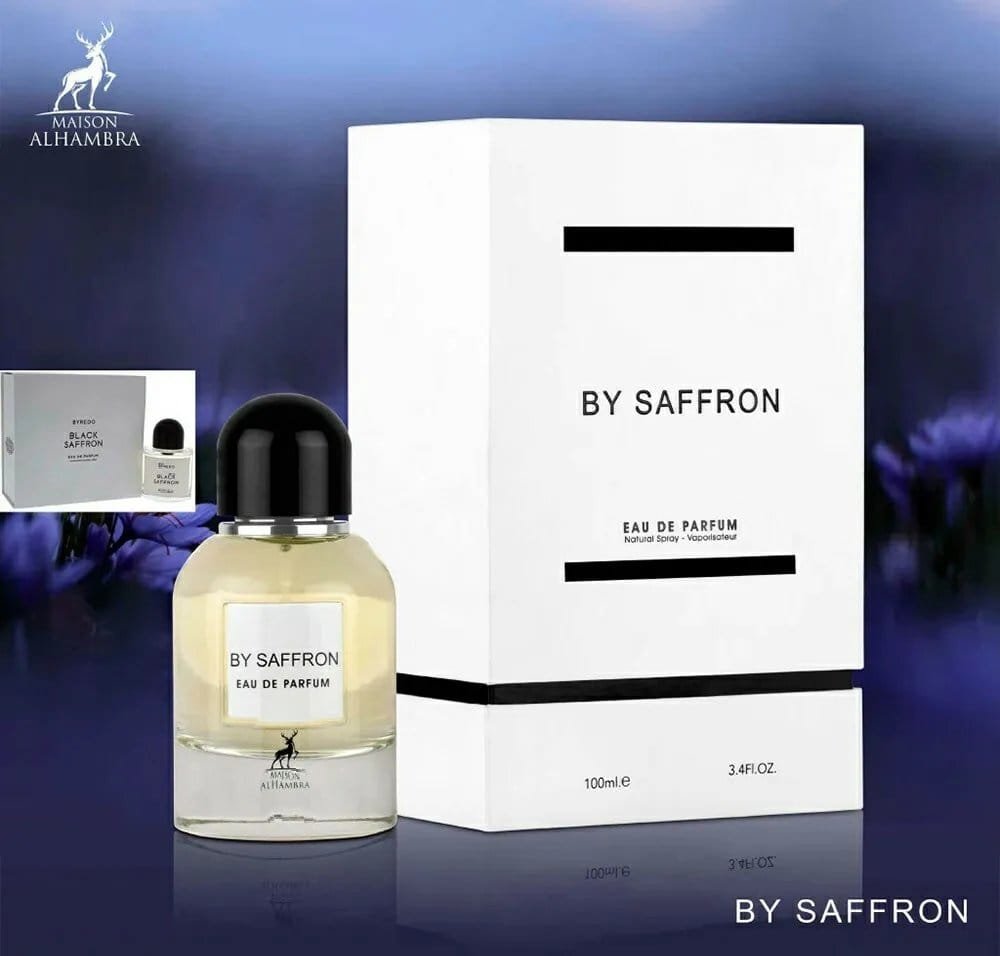 By Saffron – Maison Alhambra est une eau de parfum mixte aux notes de safran, ambre gris et bois précieux. Une fragrance orientale, chaude et luxueuse, inspirée par Baccarat Rouge 540. Disponible sur FrenchAvenue.fr.